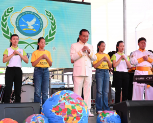 Another highlight of the day was the ringing of FOWPAL’s Bell of World Peace and Love. Dr. Hong explained the meaning of the ceremony, sharing that conscience is the driving force for positive change, urging united action to realize hopes and safeguard human rights. He noted that with transparency and integrity, humanity can come together, inspired by the Bell’s call, to let hope shine and create a brighter future. He rang the Bell nine times, expressing his heartfelt wishes for world peace. This was followed by a meaningful “Meditative Minute of Silence,” inviting all attendees and people around the world to pause at noon to send their kind wishes for global peace and harmony.