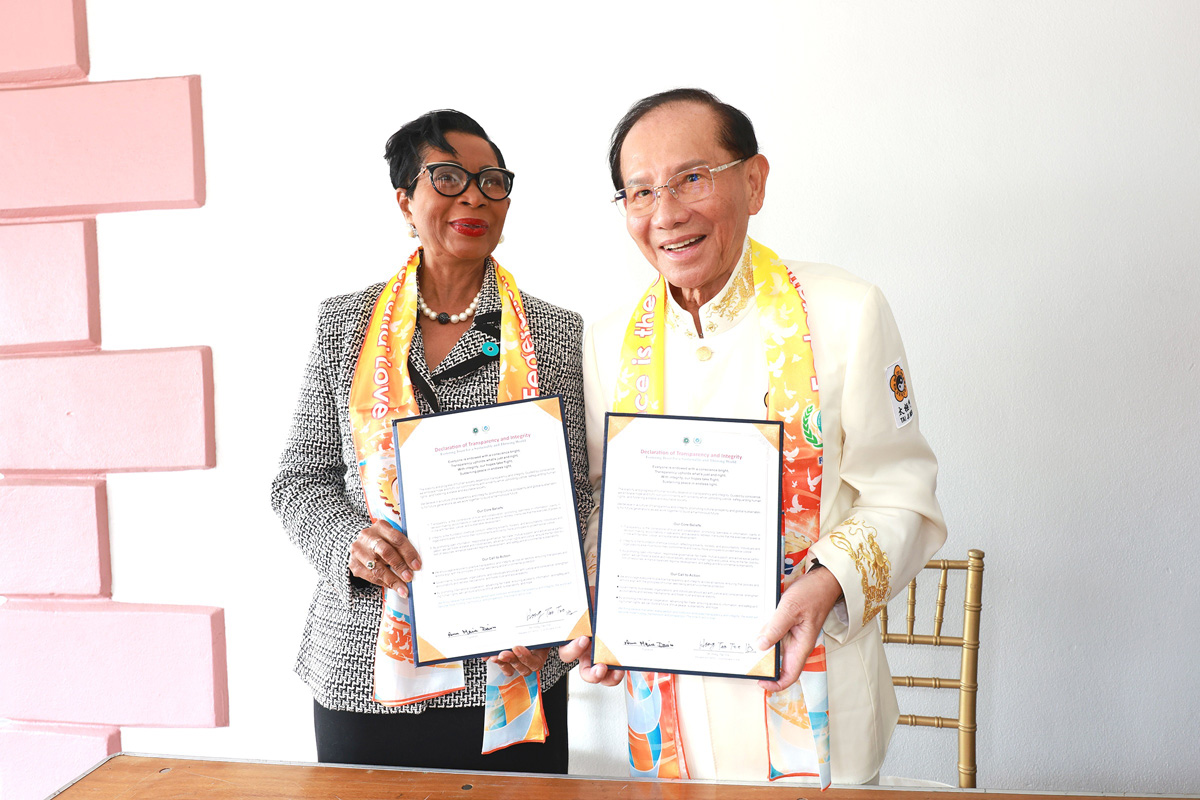 The summit also highlighted FOWPAL’s continued promotion of the Declaration of Transparency and Integrity, a global initiative encouraging ethical conduct guided by conscience. H.E. Ann Marie Davis, First Lady of The Bahamas, who rang the Bell of World Peace and Love in 2023, and Dr. Hong jointly signed the declaration, joined by many attendees who affirmed these principles. Since its proclamation on April 1, 2025, individuals in 152 nations—including current and former heads of state, UN ambassadors, government officials, and a Nobel Peace Prize laureate—have endorsed the declaration.