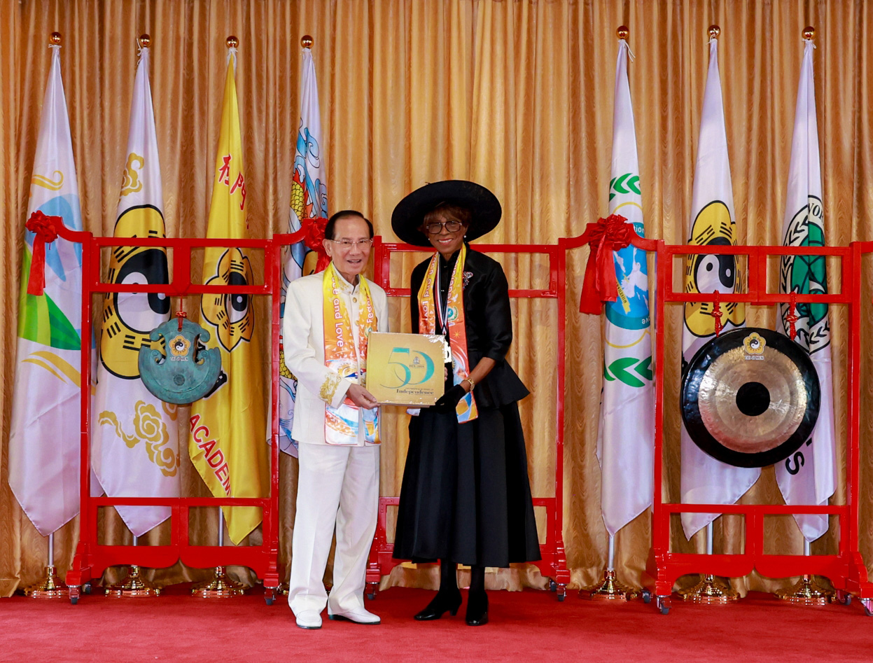 One of the most moving moments of the summit was the Bell of World Peace and Love ceremony. Dr. Hong rang the bell nine times and expressed three heartfelt wishes: that everyone may follow their conscience with transparency and integrity; that all actions be guided by genuine love and peace; and that all living beings may coexist in peace and harmony. Eight distinguished Bahamian leaders also rang the bell, each offering sincere wishes for peace and unity.